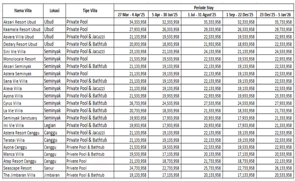 Harga termasuk tour 5 hari dan villa 4 malam.